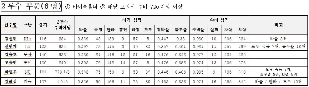 2루수 부문: 6명