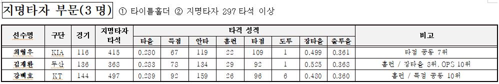 지명타자 부문: 3명