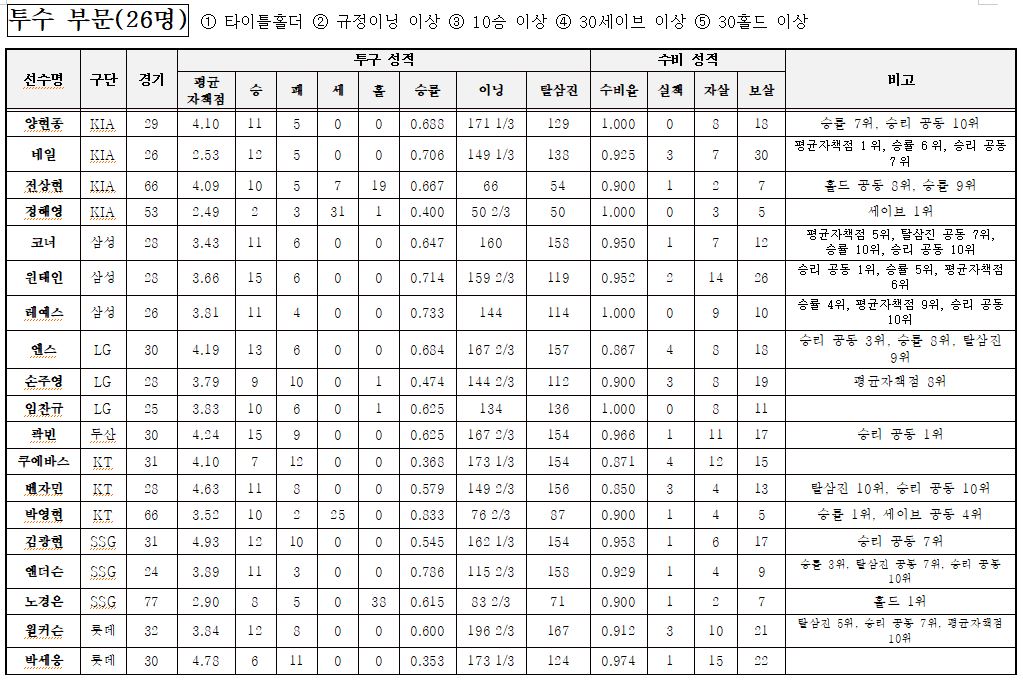 투수 부문: 26명