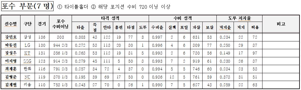 포수 부문: 7명