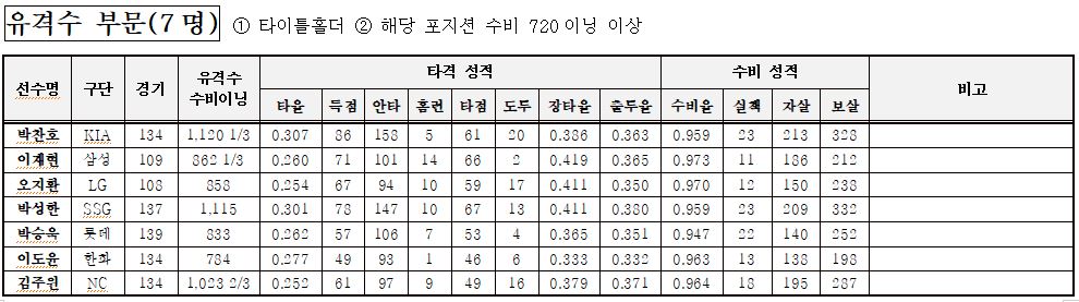 유격수 부문: 7명