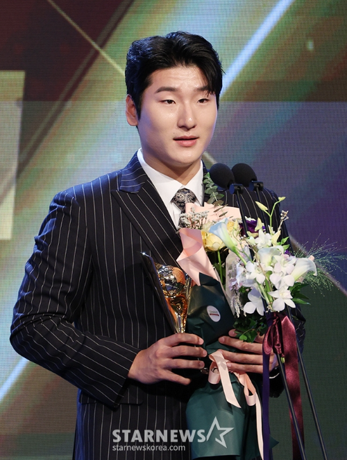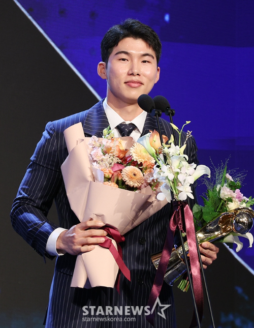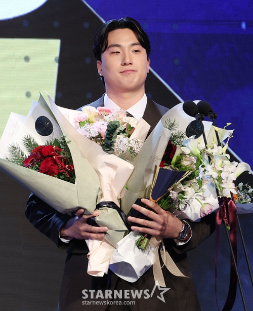 신인왕의 영예는 두산 베어스의 김택연(19)이 차지했습니다. 그는 유효표 101표 중 93표를 얻어 한화 이글스의 황영묵을 제치고 신인왕 트로피를 수상했습니다. 김택연은 2024 신인드래프트에서 두산의 1라운드 2순위로 지명되어, 첫 해 60경기에서 3승 2패, 19세이브, 4홀드, 평균자책점 2.08의 성적을 기록하며 기대 이상의