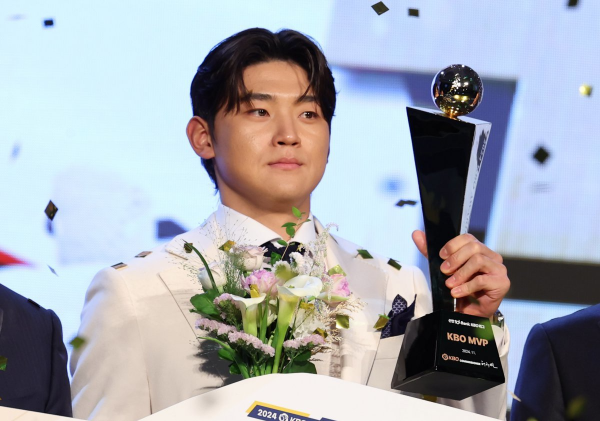 김도영은 유효표 101표 중 95표(득표율 94.06%)를 획득하며 롯데 자이언츠의 빅터 레이예스를 여유 있게 제치고 생애 첫 MVP를 차지했습니다. 올 시즌 그는 풀타임으로 뛰며 타율 0.348(3위), 38홈런(2위), 109타점(7위), 143득점(1위), 40도루(6위), 출루율 0.420(3위), 장타율 0.647(1위), 189안타(3위) 등 8개 타격 부문에서 상위권에 올라 눈부신 성과를 거두었습니다.