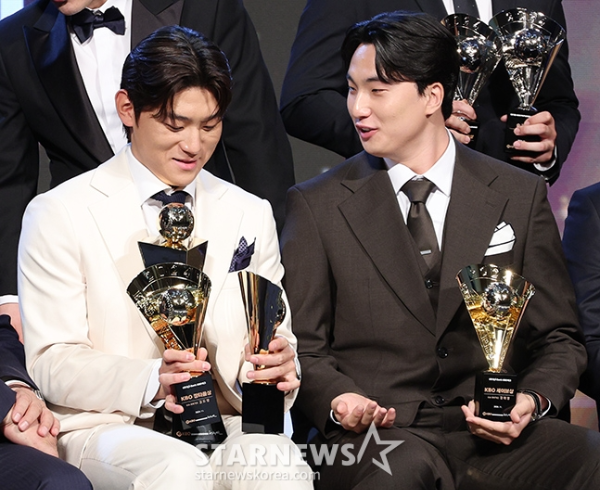 KIA의 제임스 네일이 평균자책점상을, 정해영이 세이브상을 수상했으며, 원태인과 두산의 곽빈이 각각 15승을 기록해 승리상을 공동 수상했습니다. kt의 박영현은 승률상, SSG 랜더스의 노경은은 홀드상을, 하트는 탈삼진상을 받았습니다.