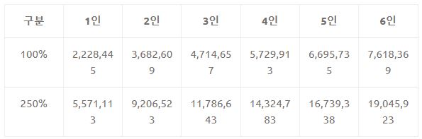기준 중위소득 250%라면 중위소득의 2.5배에 해당하는 소득 수준이기에, 고소득층을 제외한