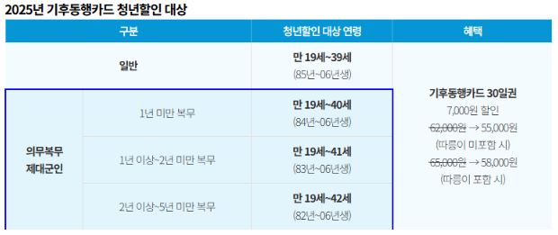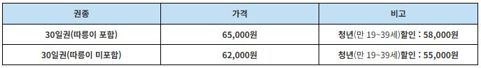 -청년 할인: 최대 20~30% 할인, 할인 적용 후 요금은 약 38,500~44,000원 수준으로 책정.