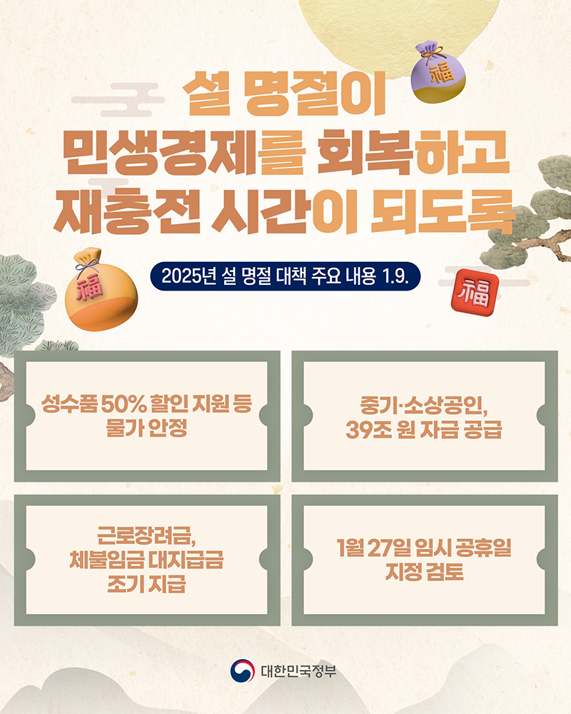 2025년 설 명절을 맞아 정부는 민생 부담 경감을 위해 다양한 지원 대책을 마련했습니다.