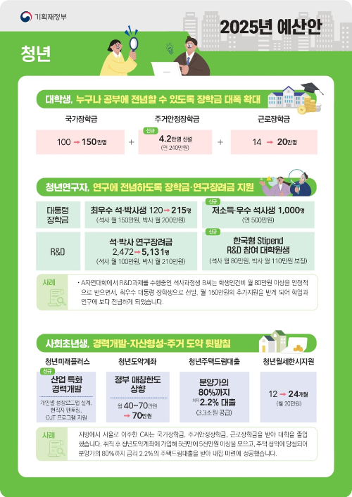 2025년 예산안은 국민들에게 다양한 혜택을 제공하여 삶의 질을 향상하고,, 경제적 안정성을 높이는 데 중점을 두고 있습니다.