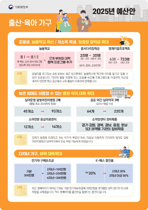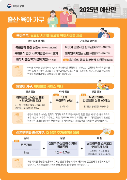 2025년 출산·육아 가구 지원 예산안 내용