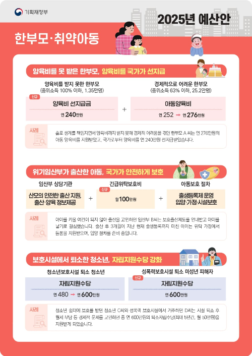 2025년 한부모 및 취약아동 지원 예산안 내용