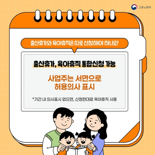 이와 관련하여 정부는 출산휴가(배우자 포함)와 육아휴직을 통합 신청할 수 있도록 신청 절차를 개선할 예정입니다.