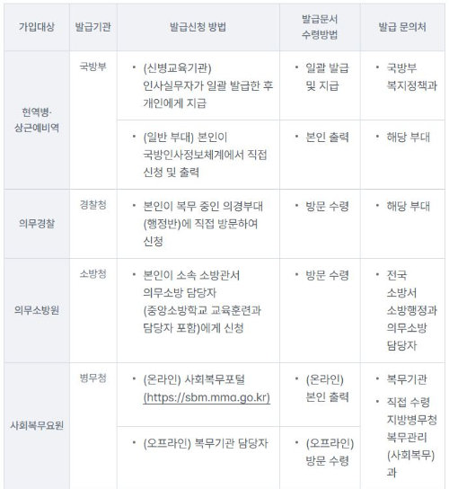 -온라인 신청: 정부의 장병 지원 포털에서 신청서를 작성하고 제출합니다.