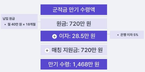전역자의 상황과 기업의 매칭 금액에 따라 다르지만, 최대 500만 원까지 지원될 수 있습니다.