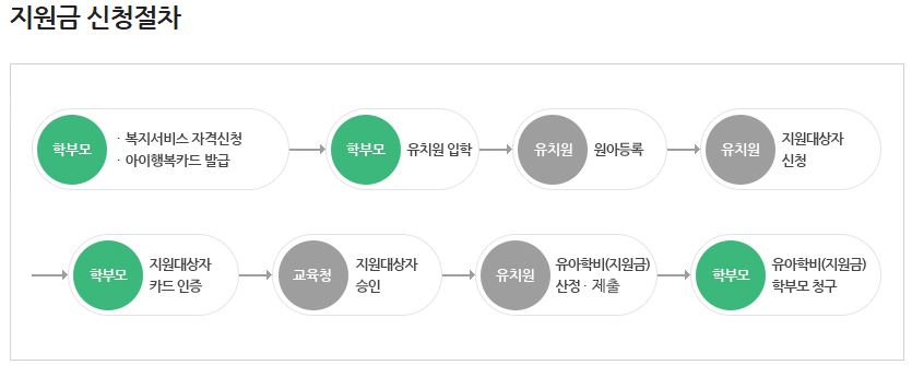 - 유아학비 지원 자격을 보유하고 있는 경우에도 저소득층 유아학비 지원을 위해서는 별도로 신청해야 지원 가능