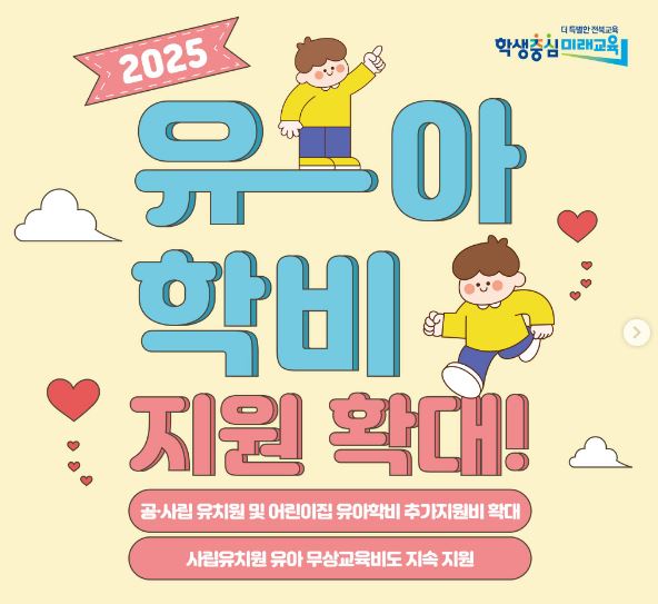 -지원금 인상: 2025년부터 유치원 학비 지원금이 인상됩니다. 기본 지원액이 월 28만 원에서 30만 원으로 증가하며, 맞벌이 가정에 대한 추가 지원도 월 5만 원에서 7만 원으로 확대됩니다.