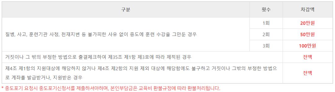 - 저소득계층 및 국가기간전략산업직종 훈련 수강자는 본인부담 없음