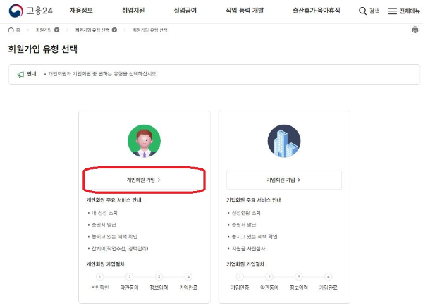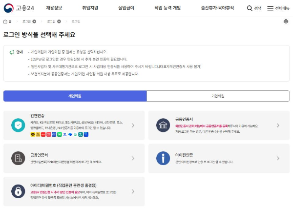 먼저 고용24 개인회원 가입을 진행해주세요!