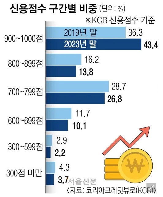 최근 금융 소비자들의 신용점수가 전반적으로 상승하면서, 상대적으로 낮은 신용점수를 가진 차주들은 대출을 받기 어려워지고 있습니다. 이는 금융기관이 고신용자에게 대출을 집중시키는 결과를 초래하고 있습니다.