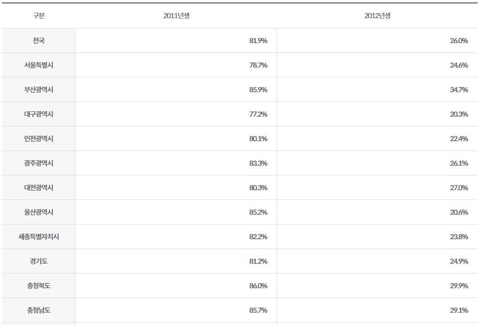 접종률은 해당 연도에 출생한 여성청소년 중 1차 접종 기록이 전산등록된 비율로, 예방접종통합관리시스템에 등록된 인적 및 접종력을 기준으로 산출되었으며, 산출 시점에 따라 변동 가능한 잠정통계입니다.