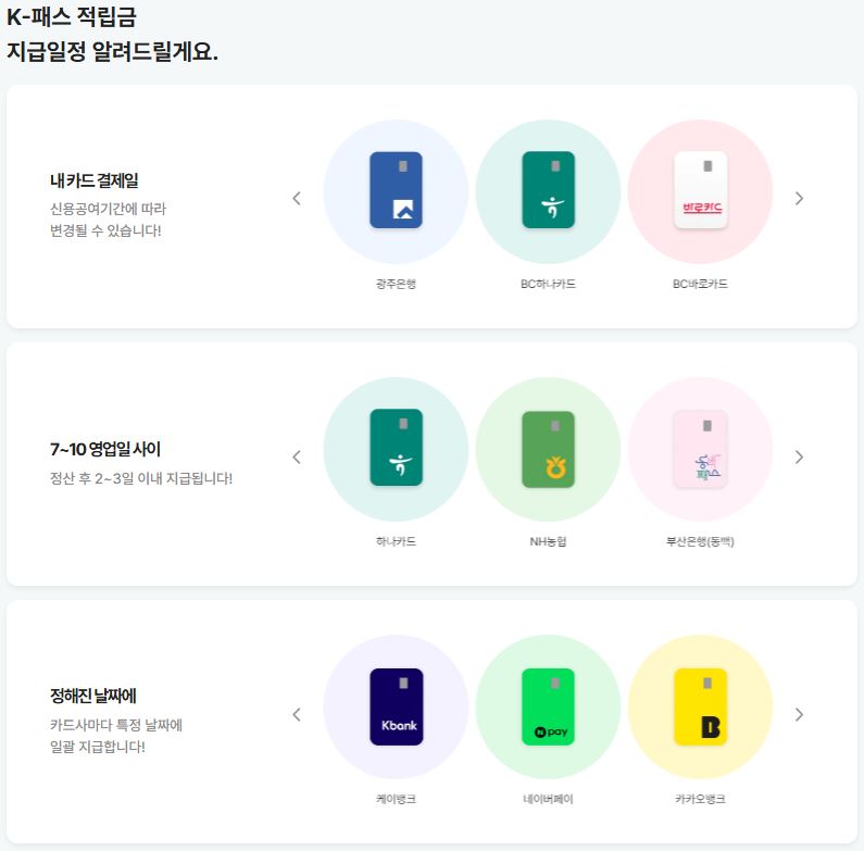 자세한 지급일은 K-패스 공식 홈페이지 하단에서 확인 가능!