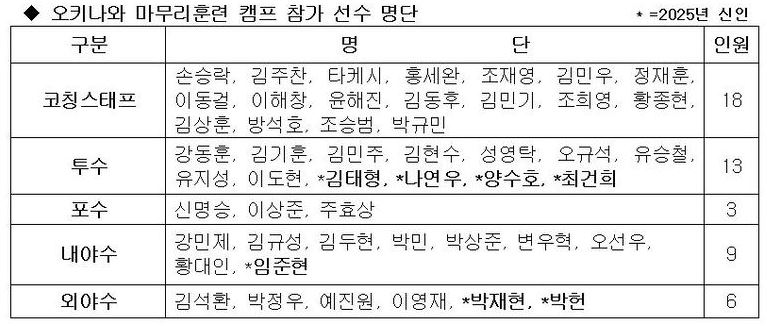 KIA 타이거즈는 현재 11월 28일까지 오키나와 킨 구장에서 마무리 훈련을 진행하고 있습니다. 이번 마무리 훈련에는 2025년 신인 선수 7명을 포함해 31명이 참가해 체력 및 기술 훈련을 소화하고 있습니다.